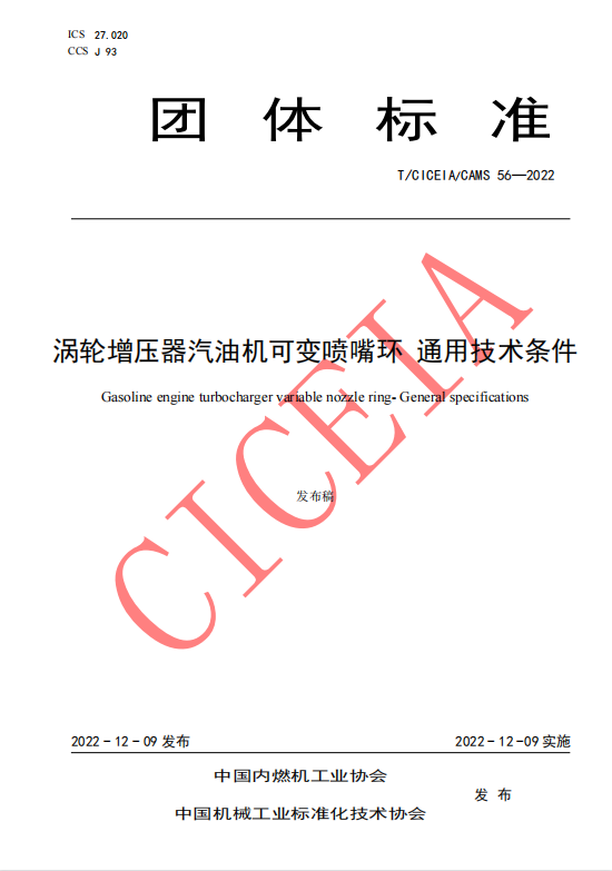 近日,中国内燃机工业协会、中国机械工业标准化技术协会颁布了《涡轮增压器汽油机可变喷嘴环通用技术条件》团体标准。此标准由萍乡德博科技股份有限公司牵头起草并于2022年12月9日颁布实施。团标的获得充分体现了公司的自主创新和标准化设计能力,进一步提升了企业的核心竞争力。