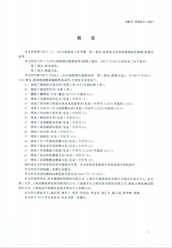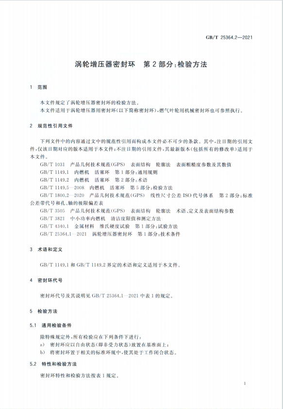 涡轮增压器密封环 第1部分 技术标准
