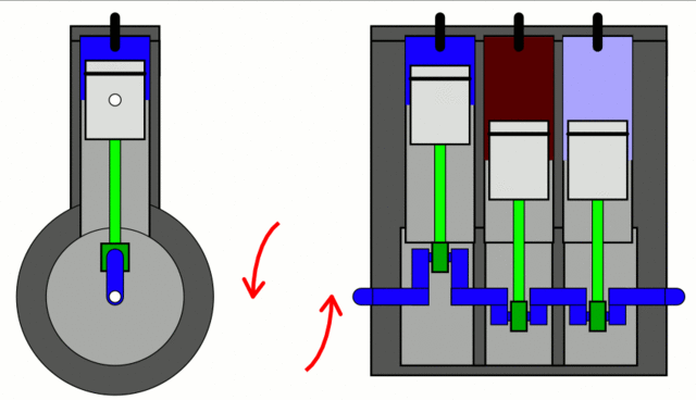 『三缸发动机做功示意图』