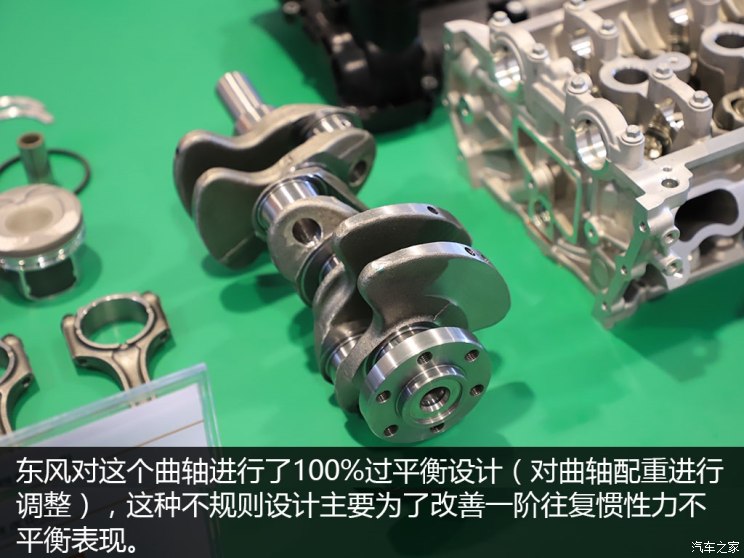 东风解决这个问题的秘密就在双质量飞轮和优化曲轴配重平衡以及对发动机悬置的匹配。(注:无平衡轴)