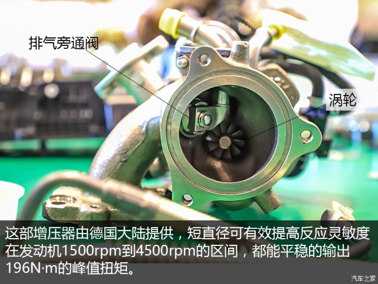 动力输出的背后,免不了涡轮增压技术的支持。这台发动机采用了如今主流的涡轮增压 缸内直喷的解决方案,由于涡轮是由发动机的废气驱动,因此不可避免地会存在滞后性。而对于这样一台小排量发动机来说,如果涡轮不能尽快介入,那么它的性能将等同于一台1.0L自然吸气发动机,这对于驾驶员来说无疑不是什么好消息。为此,东风的解决办法是采用了一颗小惯量涡轮,这样它启动起来就不会太困难,从而提升了发动机的响应速度。