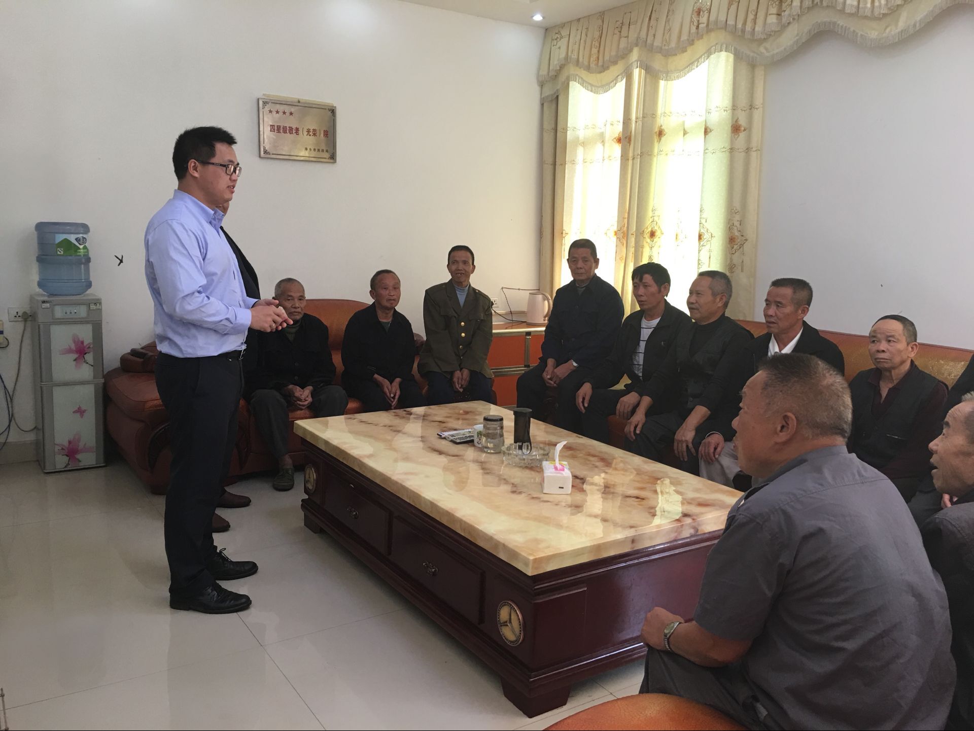 在敬老院里,公司领导与老人们坐在一起亲切交流,虚寒问暖,倾听他们的心声,了解他们的生活需求,切实关心老年人生活,并祝愿他们节日快乐、健康长寿。