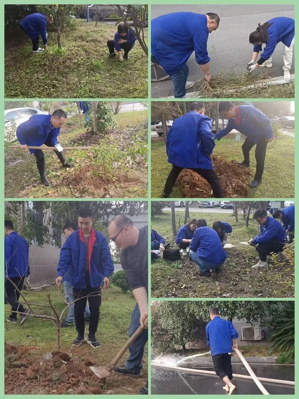 在植树现场,大家拿起铁锹、锄头开始埋头植树,部门之间互相配合,挥锹铲土、扶树填土、培土浇水,干劲十足,忙得不亦乐乎。经历一个多小时的活动,所有树木都在绿化带里“安家落户”,为德博的绿化添上了一片新绿。